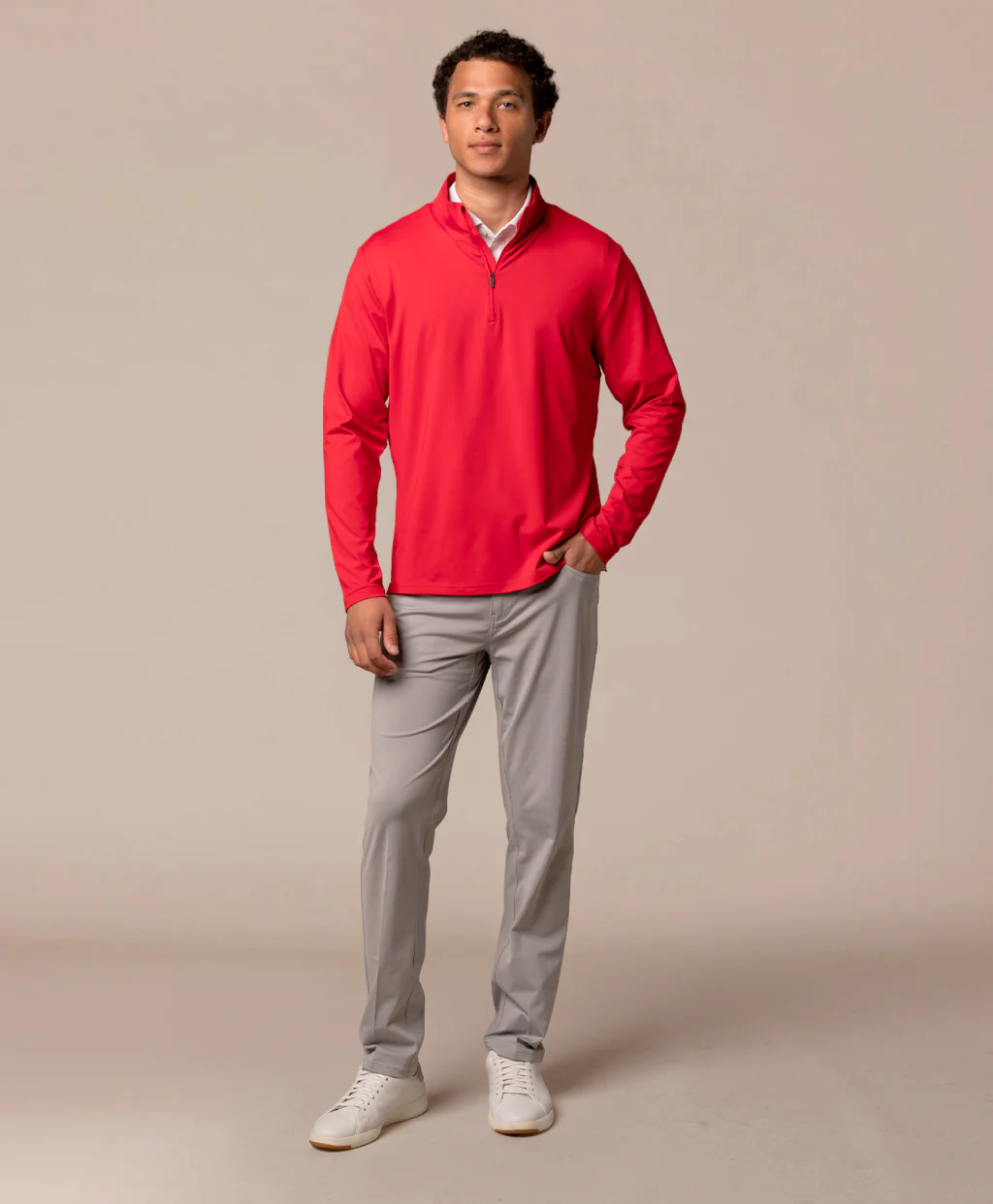 Lightweight and built to move, this technical quarter-zip delivers soft comfort with breathable stretch. Easy to care for, easy to layer, and ready for long sessions on the range.
