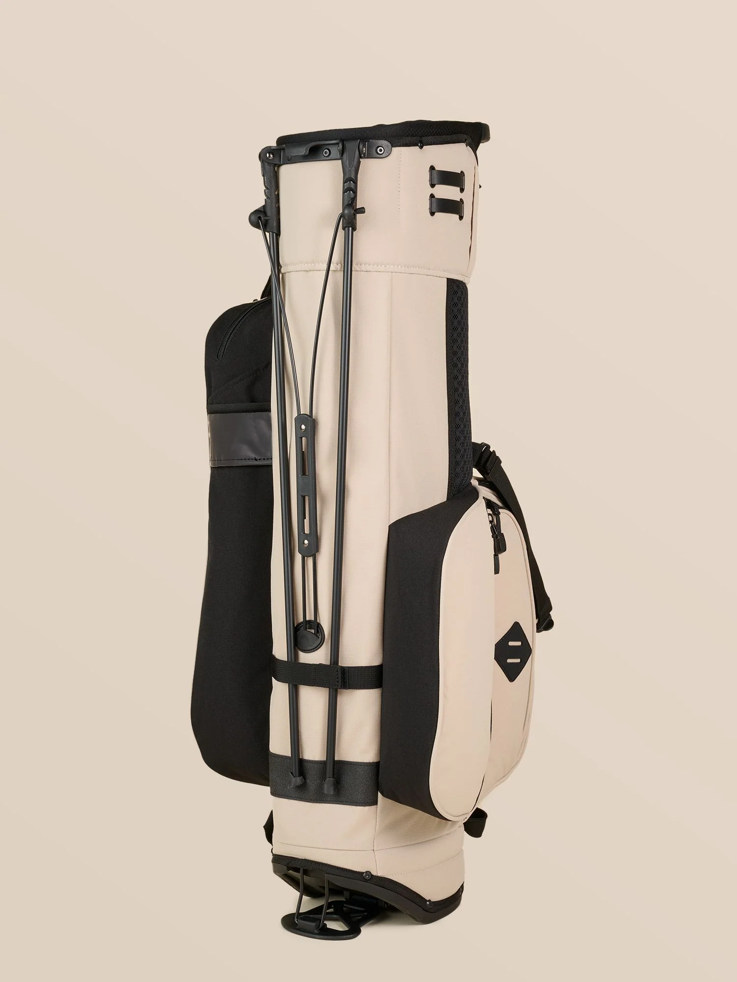 The Trouper Stand Bag from Jones was designed with a versatile single or double strap. It features a five-way divider, seven pockets, and a large insulated cooler pocket that fits up to four cans. Fleece-lined valuables compartments and a sturdy stand system make it the perfect blend of function and reliability.